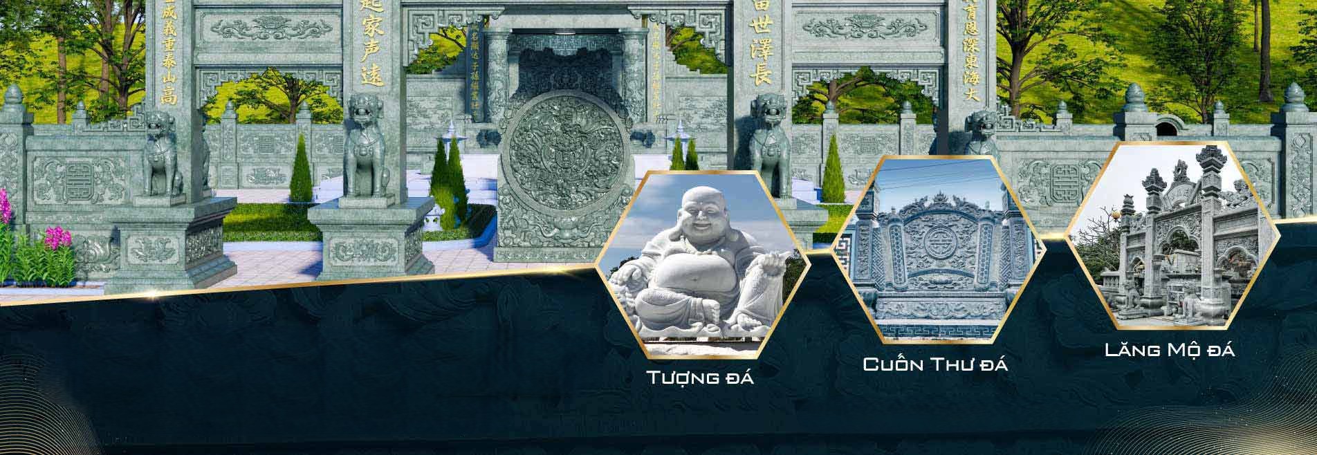 Điêu Khắc Đá Thiên Đường tự hào là đơn vị có truyền thống 7 đời trong nghề điêu khắc đá. Chúng tôi chuyên thi công các sản phẩm như: Mộ đá, lan can đá, cây hương đá, cuốn thư đá,… và các công trình tâm linh lớn Lăng mộ đá, đình chùa,…